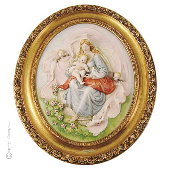 MADONNA WITH DOVES picture bas-relief porcelain Capodimonte handmade Made in Italy exclusive